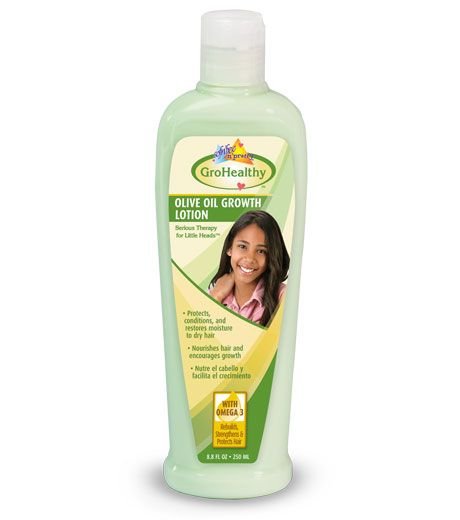 Gro Healthy Olive Oil Hair Growth Lotion Just what thin, frail hair needs. Give your little girl’s dehydrated hair and dry scalp a daily bath of healing olive oil, Omega 3 and other natural moisturisers like nettle and rosemary. Goodbye weak, breaking, thin hair and itchy scalps. Hello, strong, thick and healthy hair fo ryorui baby girl. For relaxed and natural hair.